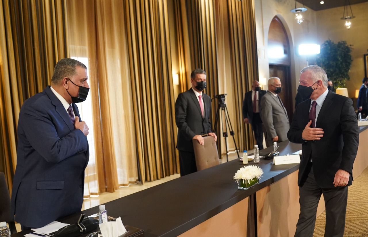 The meeting was also attended by the Director of the King's Office, Dr. Jaafar Hassan, Muath al-Zubi, adviser to His Majesty, Samah Hyari and Muayad al-Habashneh.