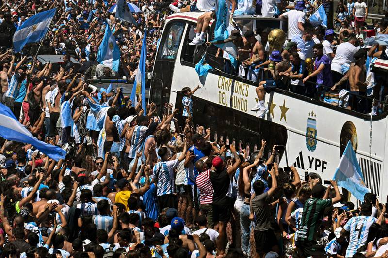 But as the celebrations became more chaotic and fever pitched, the players – who defeated France in Sunday's dramatic final in Qatar – were unable to reach the central Obelisco monument as planned because the route was completely blocked by the estimated four million people out to party.