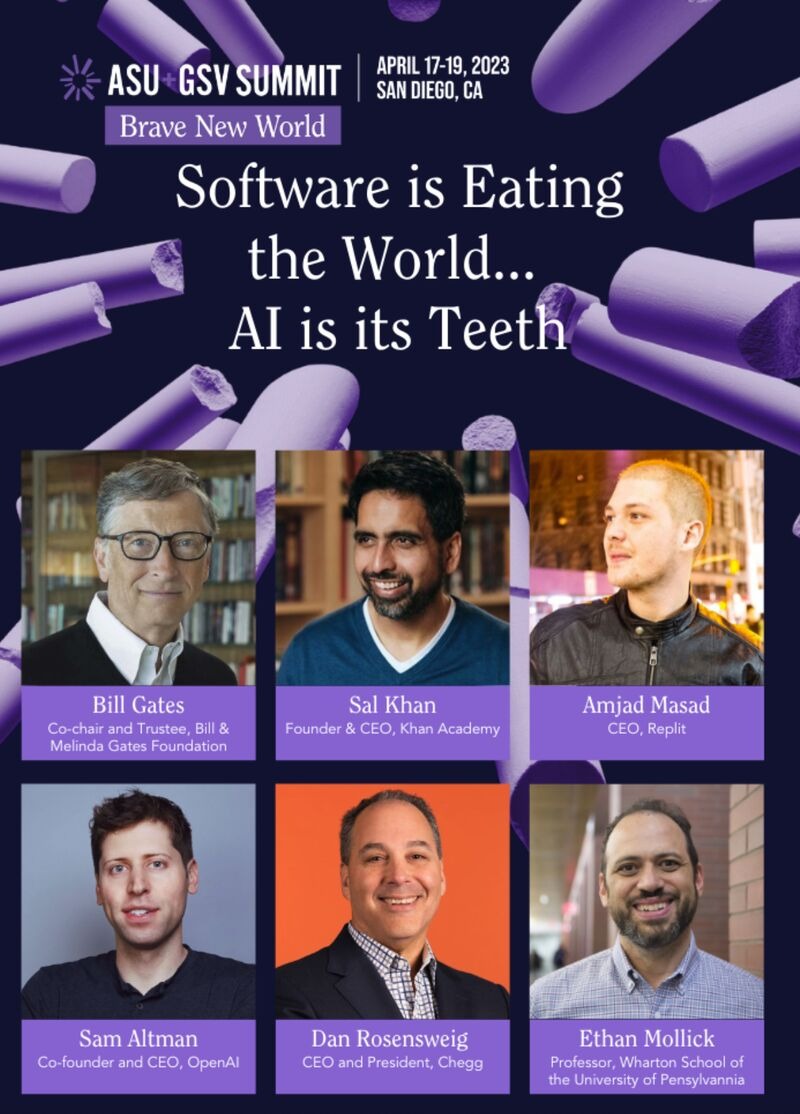The famous Bill Gates, the American business magnate, philanthropist and investor and co-founder of Microsoft, will be among the speakers at ASU+GSV Summit.